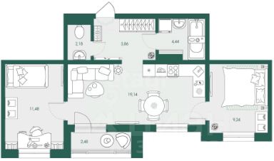 1-к, Авиационная, 74б Показать на карте