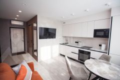Сдается квартира ( комната плюс кухня-гостиная) в элитном жилом комплексе ''Грин Палас Люкс''. ''Грин Палас Люкс'' представляет собой современный, комфортный, престижный комплекс, расположенный в центре Южно-Сахалинска. Подъезд оснащен лифтом, охраной и видеонаблюдением. Удобная и функциональная планировка, просторная кухня-гостиная, имеется гардеробная и вместительный шкаф-купе. Квартира располагается на седьмом этаже. Восточная сторона света, потрясающий вид на Горный Воздух и краеведческий музей. Теплые полы в ванной комнате и в прихожей, кафельная плитка. Большой совмещенный санузел, электротитан. Квартира сдается вместе с мебелью и бытовой техникой. В доме работает круглосуточная охрана, вход по картам, видеодомафон, крытая автопарковка, соединенная с жилым комплексом крытым мостовым переходом. На первом-втором этажах расположены магазины, популярные рестораны и салоны красоты. На последнем этаже парковки находится фитнес-клуб. Территория дома охраняется, въезд через шлагбаум. Во дворе чисто и комфортно, есть детская площадка.75000 все включено Код пользователя: 9427Номер в базе: 10823941Залог 15 000 ₽