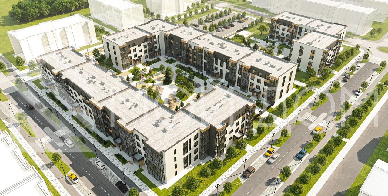 Для проекта выбрана квартальная модель застройки со своими улицами, скверами, бульварами, площадями и центрами общественной жизни. Низкая этажность домов, соразмерная человеку, позволяет чувствовать себя комфортно в квартале и гармонирует с природным ландшафтом.