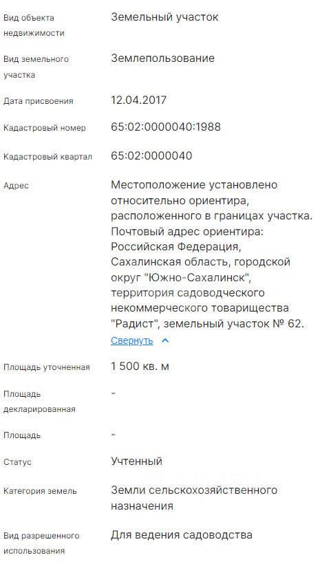 Продаётся ровный земельный участок 15 соток в районе Елочки, СНТ '' РАДИСТ''. Идеальное место для постройки своего загородного дома. К участку уже проведён свет, до границы СНТ проведена газовая труба. Участок правильной прямоугольной формы, ровный. В зимнее время проезд не затруднен, дорогу чистят. СНТ активно развивается, соседи строят дома. Данный участок подойдет для инвестиций, через некоторое время цены на землю в данном месте будут значительно выше. По всем интересующим вопросам отвечу. Кадастровый номер 65:02:0000040:1988