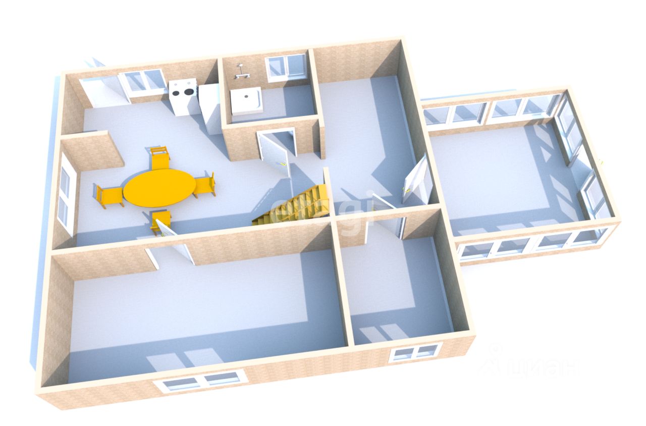 Двухэтажный дом из бруса, 3 отдельные комнаты, кухня-гостиная, бойлерная, 2 санузла.