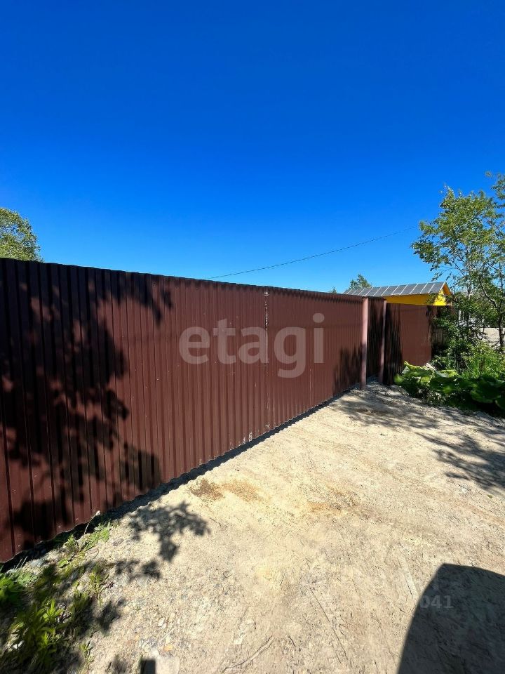 Передняя часть участка отгорожена забором с воротами из профнастила.