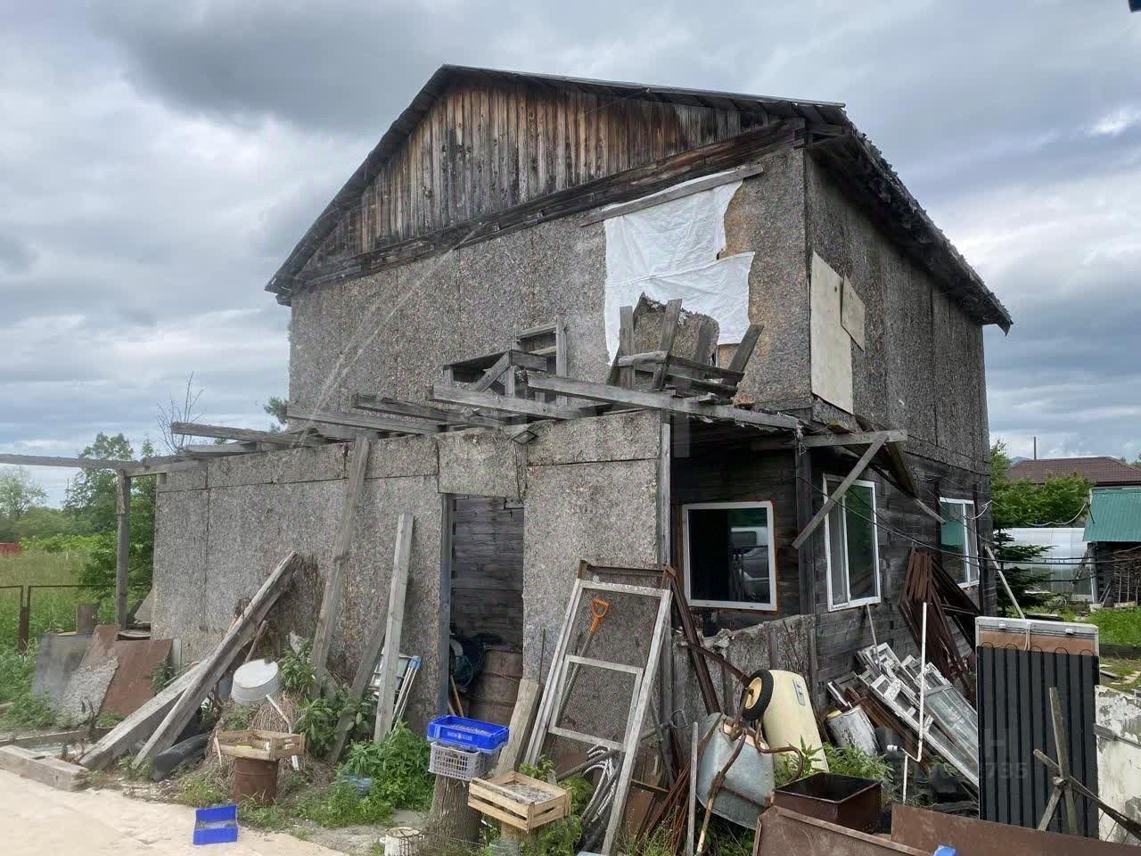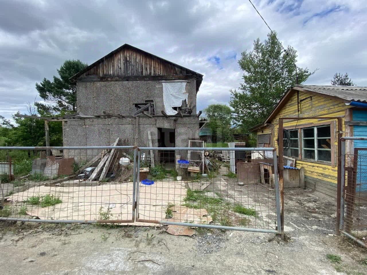 На участке располагается двухэтажный недостроенный дом 8 на 8 м. Первый этаж брус, второй каркас. Дом стоит на фундаменте.