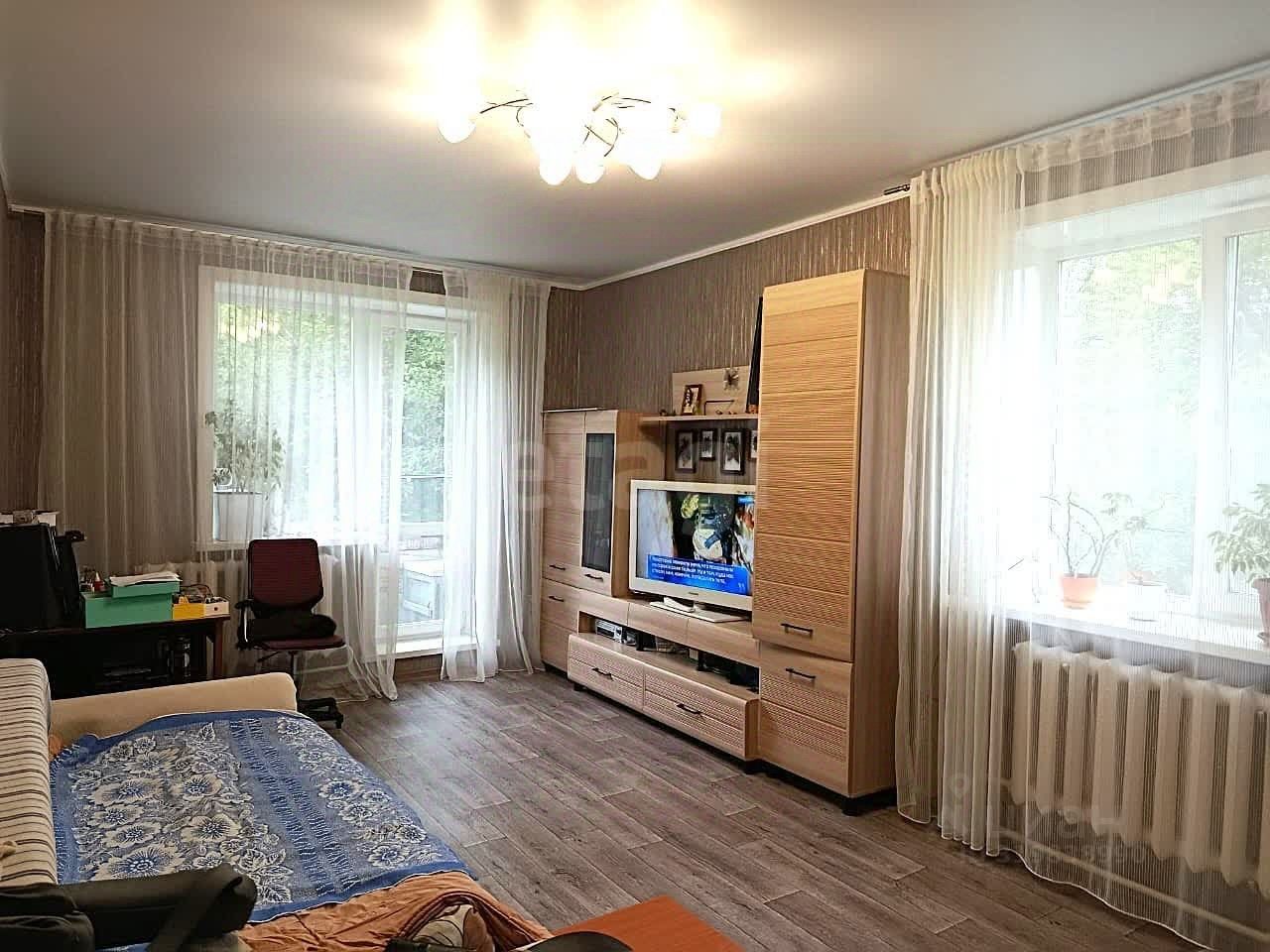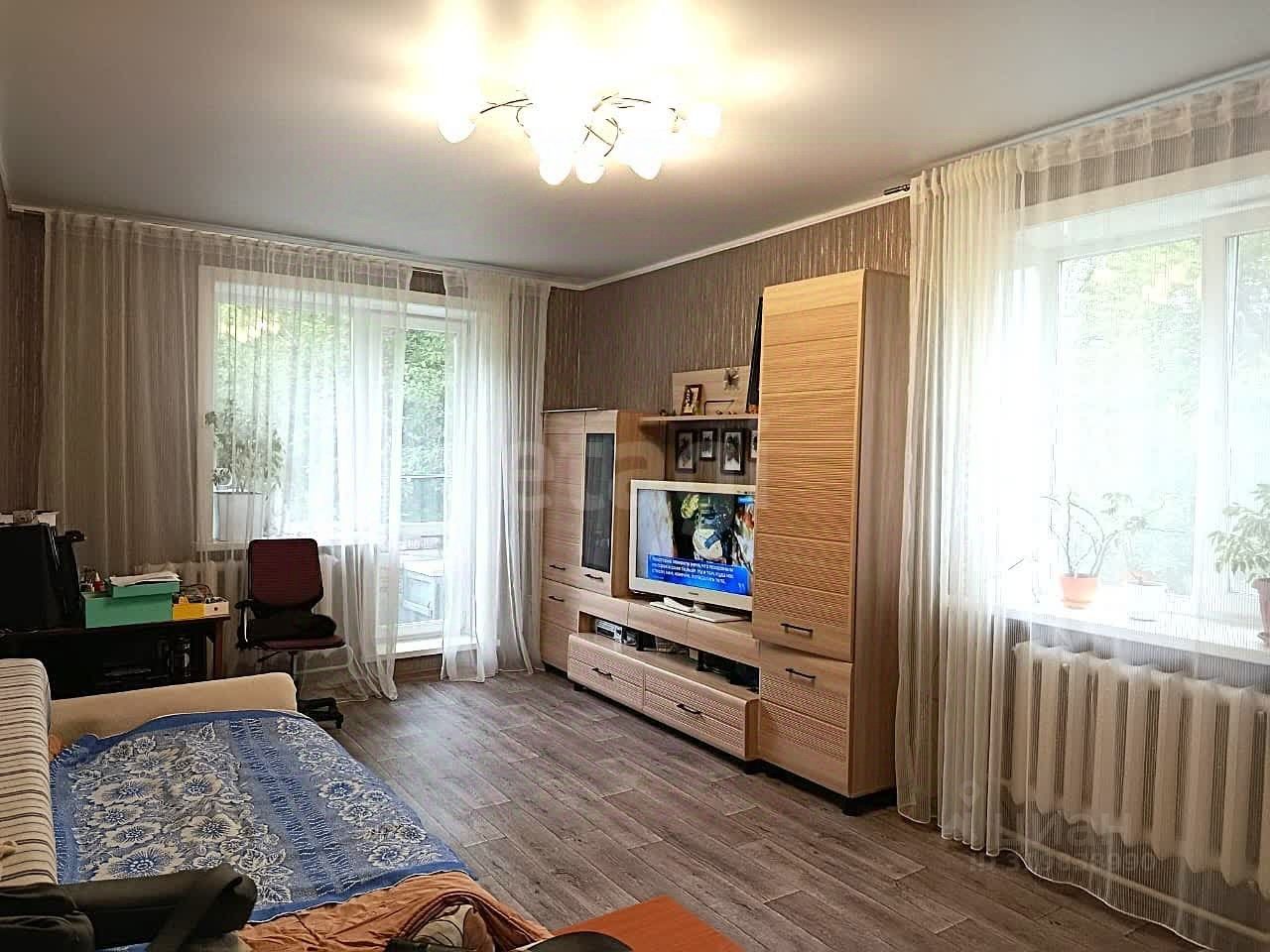 В квартире комнаты раздельные, кухня 9 м кв- в данных помещениях сделан косметический ремонт (выровненные потолки, на полу линолеум, на стенах обои), санузел раздельный, просторная прихожая, гардероб (требуют ремонта).