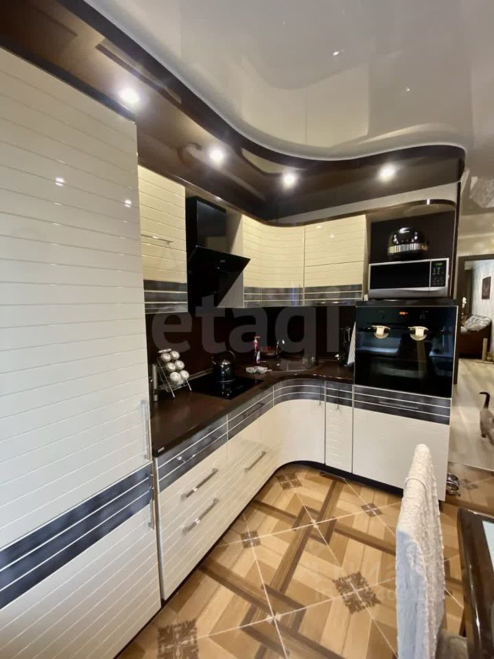 В квартире выполнен косметический ремонт. Выровнены стены, установлены натяжные потолки, частично заменена электропроводка, а также полностью обновлена сантехника. Напольное покрытие плитка ПВХ (ударопрочный и влагостойкий материал). Окна выходят на южную и северную стороны, а балкон застеклен, расширен на 30 см и утеплен. Санузел совмещен и выполнен из кафеля, установлен теплый пол. Кухня оборудована кухонным гарнитуром и встроенной техникой. В квартире остается практически все!