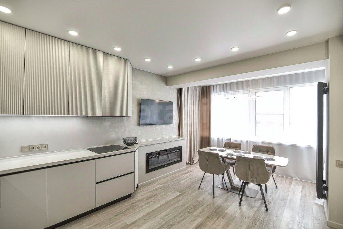 К продаже предлагается уютная, просторная квартира, общей площадью 93 кв.м., с 2-мя лоджиями 106 кв.м. на 7-м этаже 9-ти этажного дома. Дом индивидуальной планировки. В квартире 3 полноценные раздельные комнаты, кухня-гостиная 22 кв.м., 2 санузла, 2 лоджии, гардеробная в мастер спальне. В квартире выполнен свежий современный ремонт, в каждой комнате установлены кондиционеры, имеется встроенный камин, теплый пол в санузлах, в остальных помещениях плитка ПВХ, стены окрашены, на кухне декоративная штукатурка. Горячая вода круглый год. Окна выходят на южную и северную стороны. Дом расположен в одной из лучших локаций нашего прекрасного города. В шаговой доступности д/сад ''Островок'', ''Лукоморье'', средняя школа 6, сквер имени С.А. Есенина, различные супермаркеты и магазины и т.д. Двор благоустроенный, шлагбаум, рядом отличная многофункциональная детская площадка. Квартира юридически чистая. Звоните, записывайтесь на показ.