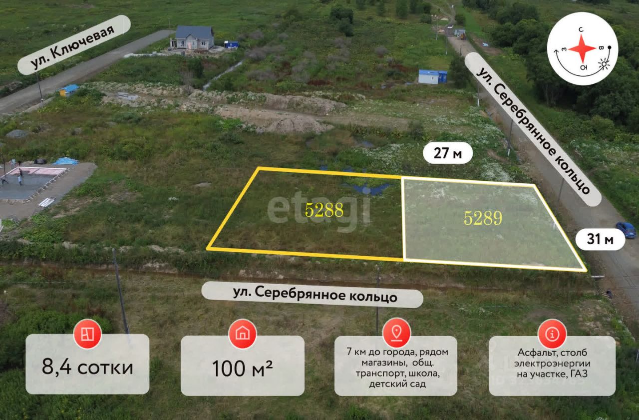 Для любителей северной части нашего города посвящается. Село Дальнее. Великолепный участок для строительства индивидуального жилого дома в живописном месте. Рядом два озера, где в жаркую погоду можно провести время, а зимой покататься на коньках. Площадь участка 8,4 сотки, а именно ширина участка 27 метров, глубина участка 30 метров. На данной площади можно построить большой дом площадью 120 м2 и останется место для Вашего автомобиля. Кадастровый номер: 65:02:0000039:5289. Участок абсолютно сухой, отсыпки не требует, вдоль участка проложена дренажная канава. Столб линии электропередач находится рядом с участком. Район активно развивается. Протянули газ!!! Есть возможность купить соседний участок 65:02:0000039:5288 и значительно увеличить площадь застройки. Агентство ''Этажи'' федеральная компания. Мы сотрудничаем с лучшими застройщиками нашего города. За качество оказываемых услуг отвечаем своей репутацией. За подробной информацией приходите на консультацию.