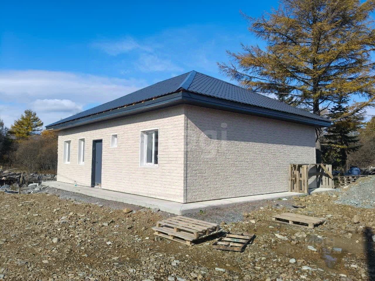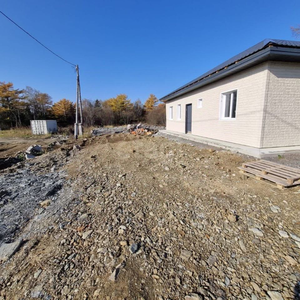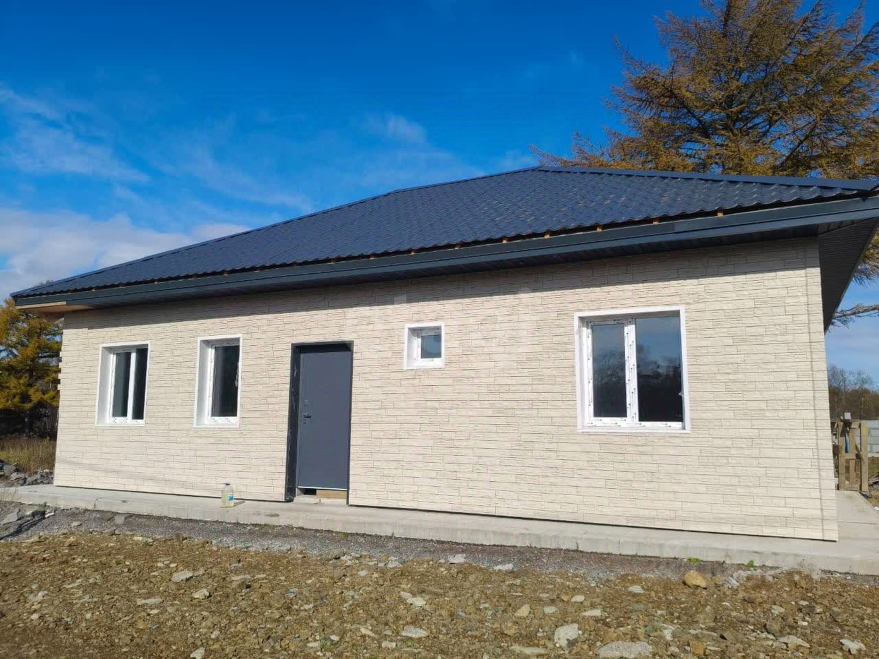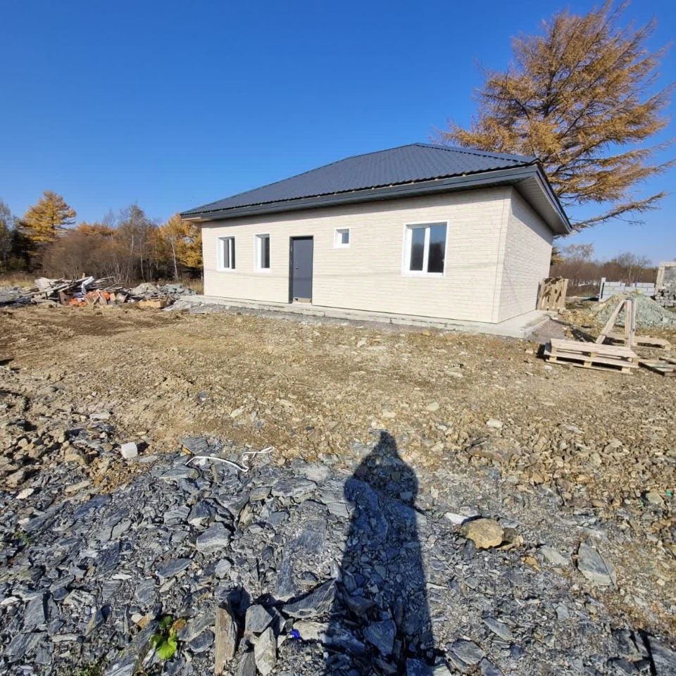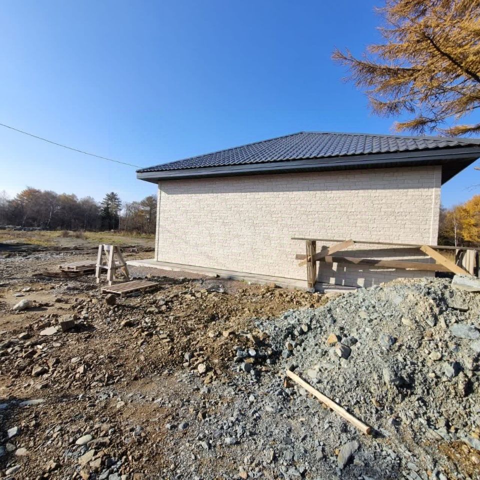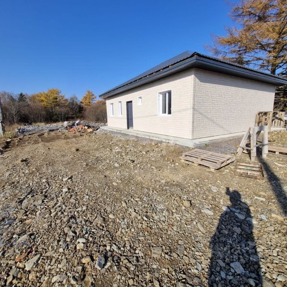65:01:0901013:488. Продается готовый дом 100 кв. м. Подходит под ДВ ипотеку. Участок 7 соток, газоблок, фасад Дёке, крыша металлочерепица, перекрытия деревянные, утепление минвата, окна ПВХ, входная дверь с терморазрывом. Черновая отделка. Планировка: 3 спальни, кухня-гостинная, совмещенный санузел, техническое помещение. Фундамент монолитная плита, готовая отмостка. Район Шлюмберже. Свет 380 вольт, столб стоит возле дома. Газ планируют провести в 2026 году. Рядом живут соседи.