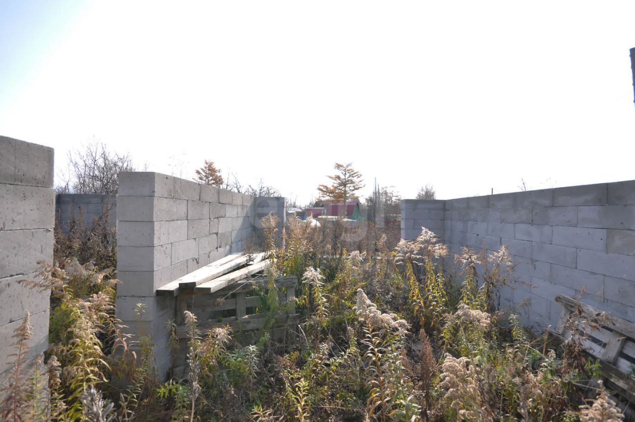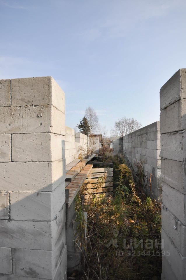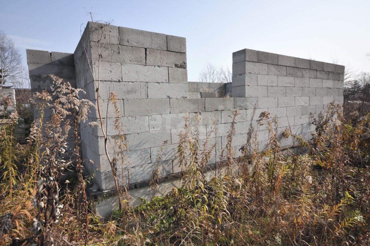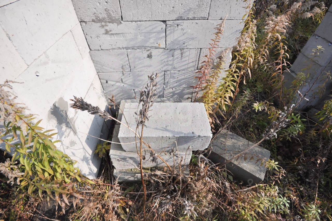 Произведена отсыпка из песка, по периметру дома ленточный фундамент. Собрана коробка первого этажа из газоблока. Дом на 50 квадратных метров. Начало строительства дома 2023 год. На участке также остался материал. Столб электро-передач подведен к участку.