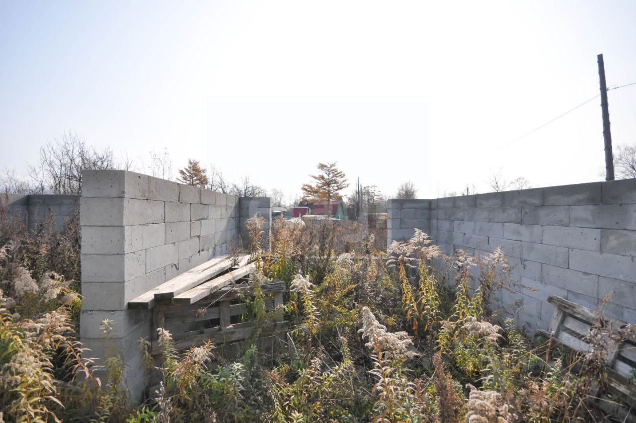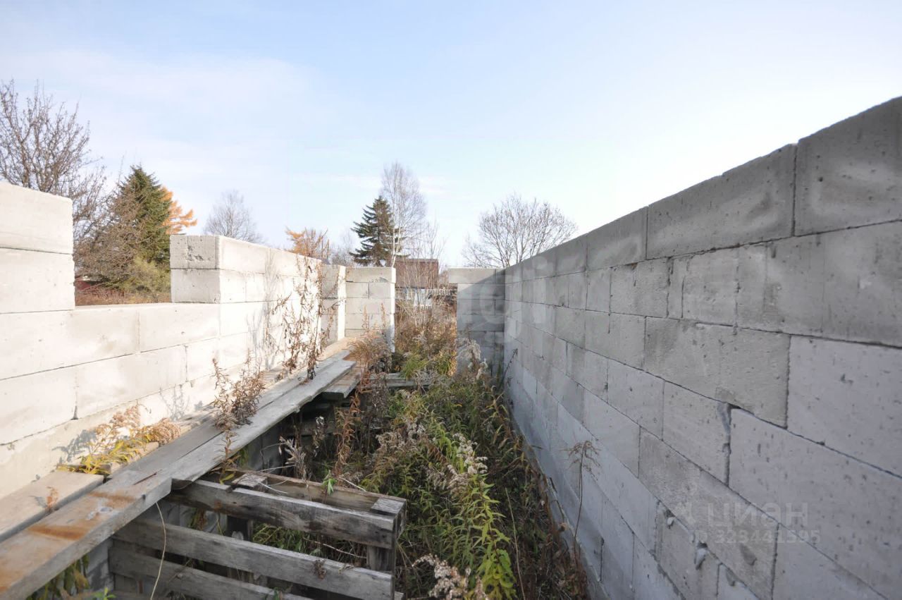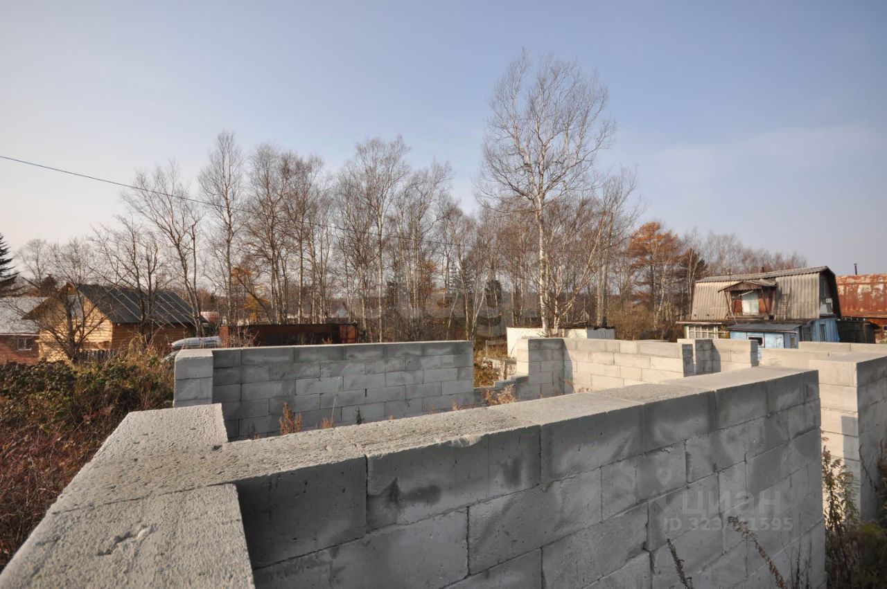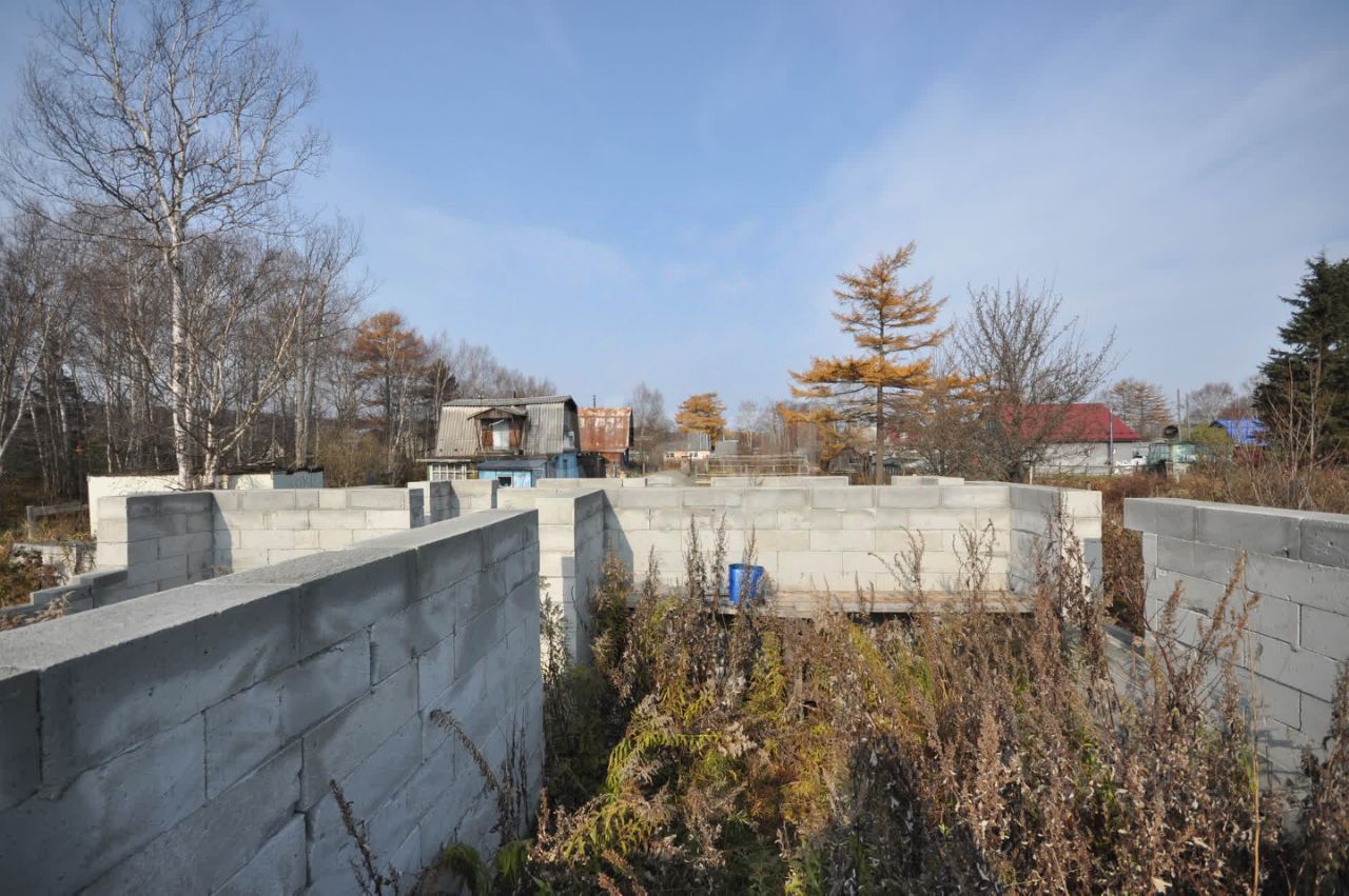 Произведена отсыпка из песка, по периметру дома ленточный фундамент. Собрана коробка первого этажа из газоблока. Дом на 50 квадратных метров. Начало строительства дома 2023 год. На участке также остался материал. Столб электро-передач подведен к участку.