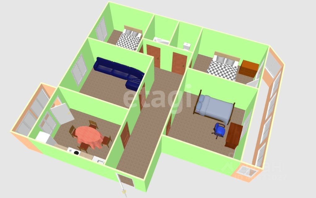 Планировка отличается продуманностью: все четыре спальни изолированы, что обеспечивает приватность, санузел раздельный. Просторная кухня с выходом на застекленный балкон и утепленная лоджия с восточной стороны создают дополнительные удобства. Ориентация окон на восток и запад гарантирует обилие естественного света в течение всего дня .