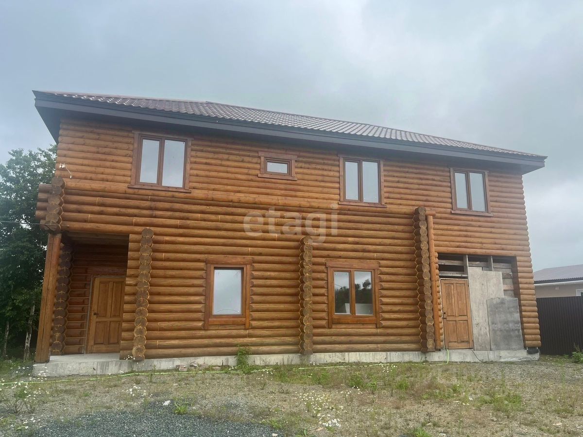 Продается двухэтажный дом, в районе охотской трассы, 4 км., СНТ ''Досааф'' по улице Аэродромная 15. Кадастровый номер: 65:01:1001021:240 Дом полностью деревянный, первый этаж из фрезерованного бруса диаметром 260 мм, второй этаж поднят на пять венцов из бруса, дальше каркас, обшитый доской блок-хаус (задняя сторона плоская, передняя выпуклая под бревно). Крыша вальмовая, металлочерепица ''мультикупер бронза''. Дом в черновой отделке, очень просторные и функциональные комнаты. Наружная часть дома полностью обработана огнебиозащитой и нанесена специальная краска пропитка по дереву, швы обработаны герметиком по дереву. Участок отсыпан и поднят. На территории растут елочки и березки. По всему периметру установлен забор из профнастила с откатными воротами. Спокойный и живописный район, идеально подходит для проживания всей семьей. К дому пристроен гараж на 25 м.кв, а так же на участке располагается зимний вариант бытовки и пристроенная к ней летняя кухня. Дорога до участка полностью асфальтированная и своевременно чистится в зимнее время года. Соседи проживают круглый год.