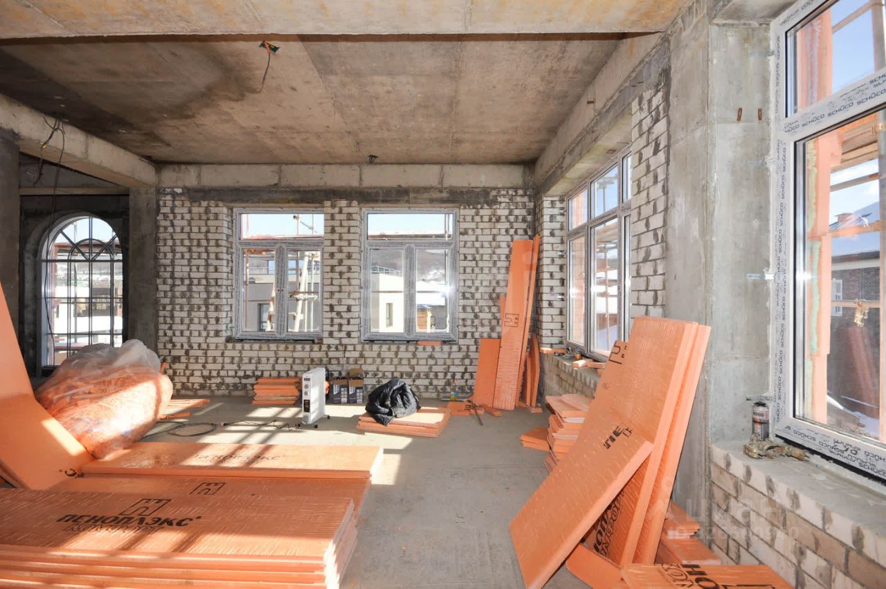 Конструктивные решения направлены на энергоэффективность и долговечность: внешние стены утеплены трехслойной изоляцией из экструдированного пенополистирола толщиной 150 мм, что гарантирует низкие теплопотери. Кровля плоская, монолитная железобетонная, с современным битумным покрытием. Установлены качественные алюминиевые окна марки Schco, включая витражные окна, которые наполнят внутренние помещения большим количеством естественного света. В доме частично выполнены черновые отделочные работы, что позволяет новому владельцу адаптировать планировку и финишную отделку под свои индивидуальные предпочтения. Объект представляет собой отличную возможность для создания современного загородного дома высокого класса с учето