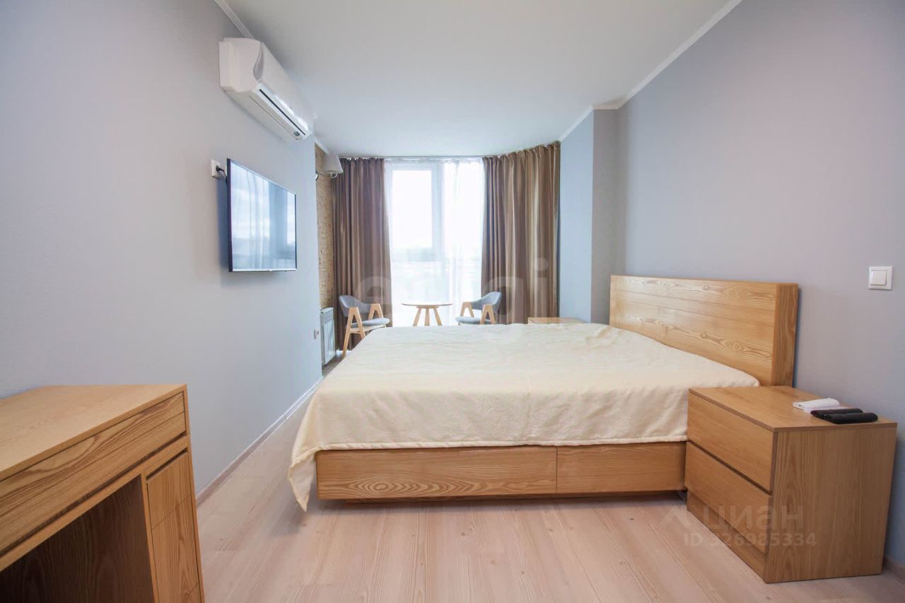 Просторная кухня-гостиная, спальня с гардеробной, совмещенный санузел.