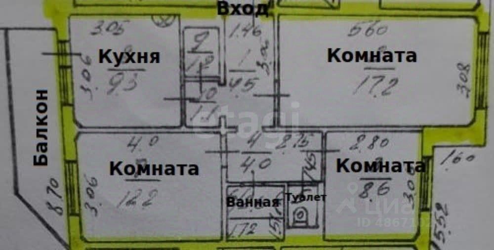Продам 1/2 доли (31 кв.м.) в 3-х комнатной квартире 138 серии 62 кв.м на первом этаже в панельном доме в спальном микрорайоне на ул. Есенина, недалеко от областной больницы. Вам в собственность переходят две комнаты: 12,2 кв.м. и 8,6 кв.м. и места общего пользования делятся со вторым собственником: кухня (9,3 кв.м.), туалет, ванная, прихожая, коридор, балкон). Счета за коммунальные услуги разделены, кроме электроэнергии. Не угловая, середина дома, в спальном районе (горячая вода круглый год). Окна деревянные ориентированы на северную и южную стороны. Квартира требует полного ремонта. Вместительная лоджия 8 кв.м. Придомовая территория оборудована парковочными местами и детской площадкой.